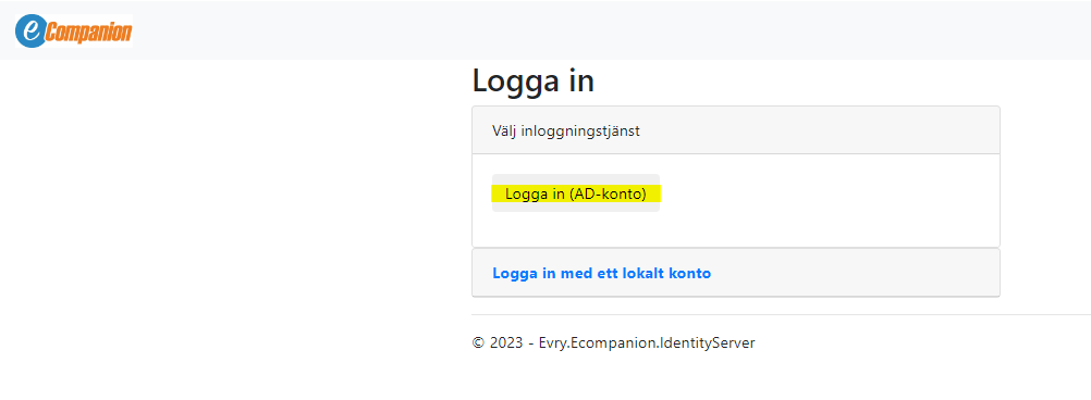 Du har alltid möjlighet att logga in med lokalt konto. När du loggar in via lokalt konto är det följande inloggningsuppgifter: