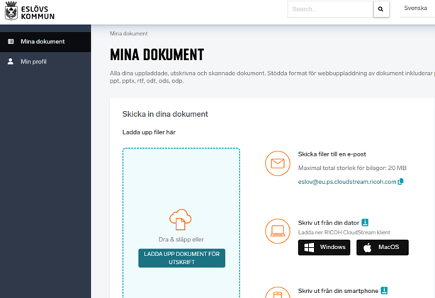 Klicka på följande länk: https://eslov.eu.ps.cloudstream.ricoh.com