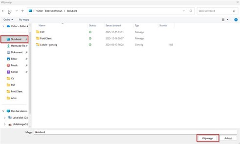 - Eftersom Microsoft Defender inte hanterar enskilda filer behöver du söka igenom mappen där den aktuella filen befinner sig. I exemplet är Skrivbordet valt. Du väljer den mapp eller plats där din fil befinner sig.