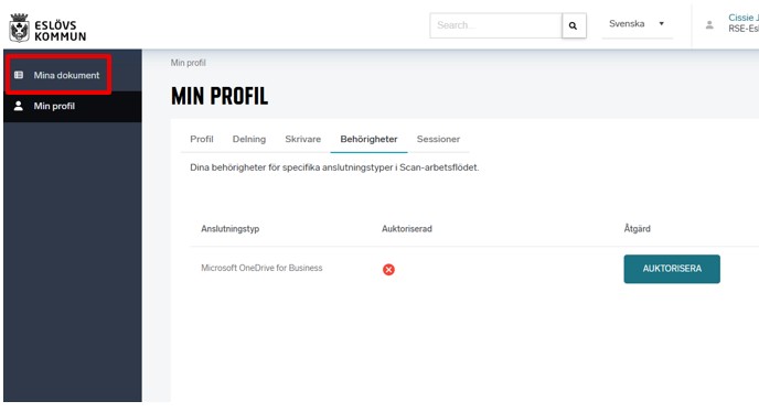- Klicka på Auktorisera och OneDrive är aktiverad för skanning.